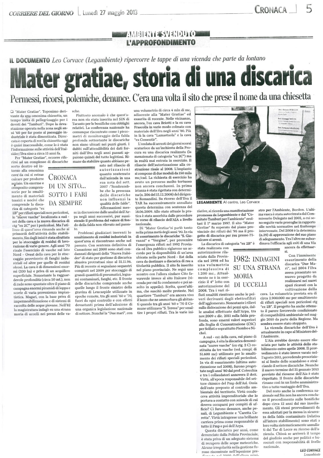 Legambiente, da sempre presente e attenta alle tematiche del territorio e alla tutela del patrimonio ambientale (negli allegati alcuni articoli riguardanti la discarica Mater Gratiae e l'utilizzo della loppa) , ha espresso in quella sede la volontà di costituirsi parte civile tramite i propri avvocati- Eligio Curci e Ludovica Coda- al fine di tutelare gli interessi legittimi di un territorio fortemente compromesso con condotte che, secondo l'ipotesi accusatoria, avrebbero determinato un "grave disastro ambientale interessante acque superficiali pubbliche, acque di falda pubbliche, terreni demaniali, terreni privati e creando grave pericolo per la pubblica incolumità derivante dal continuo sversamento delle sostanze velenose contenute nei cumuli di rifiuti suddetti nelle acque e nei terreni destinati anche ad attività agricola."