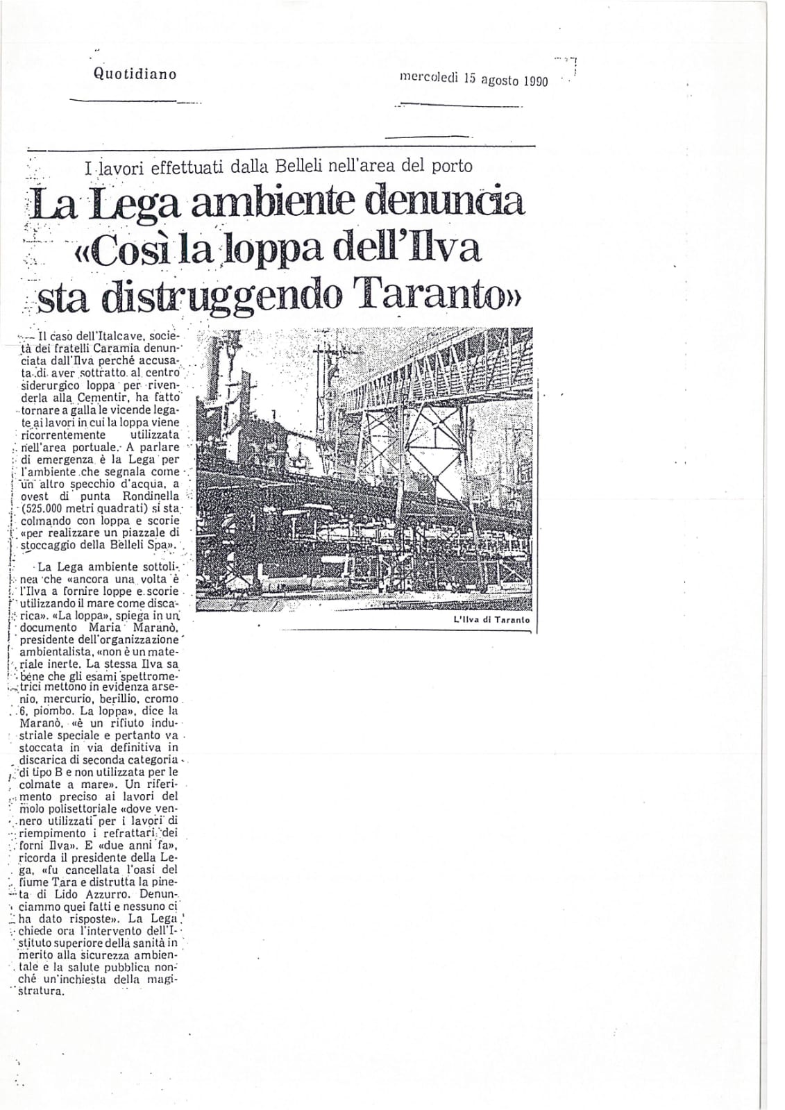 Per Legambiente questi episodi non fanno che confermare la necessità di avviare al più presto le azioni di bonifica interne allo stabilimento, questione su cui l'associazione è intervenuta più volte. Per Legambiente occorre intervenire con urgenza, effettuare le caratterizzazioni, la messa in sicurezza e la bonifica, per impedire conseguenze ben più gravi, come l'avvelenamento della falda o la dispersione nel vicino quartiere Tamburi di sostanze tossiche.