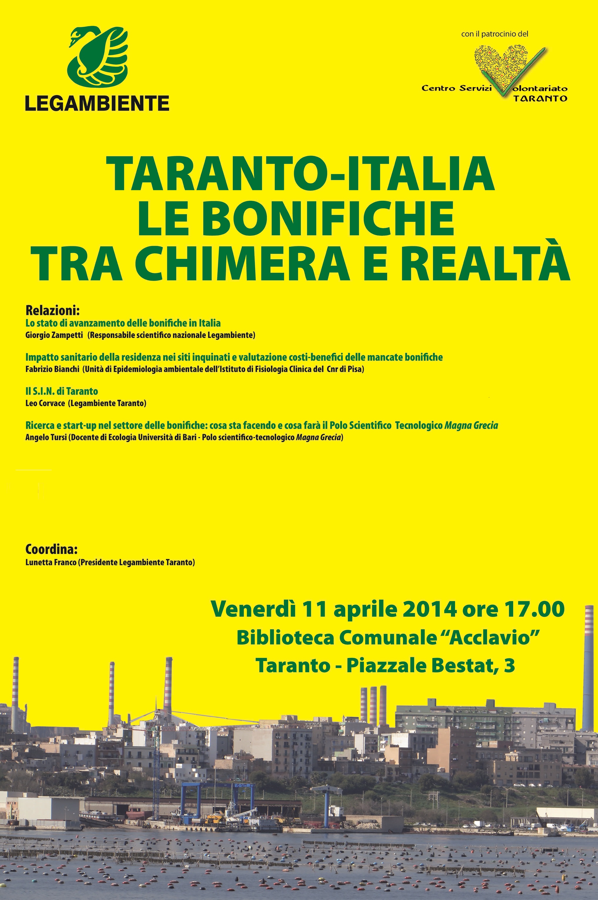 TARANTO-ITALIA: LE BONIFICHE TRA CHIMERA E REALTA' venerdì 11 aprile ore 17 - Biblioteca "Acclavio" - Piazzale Bestat