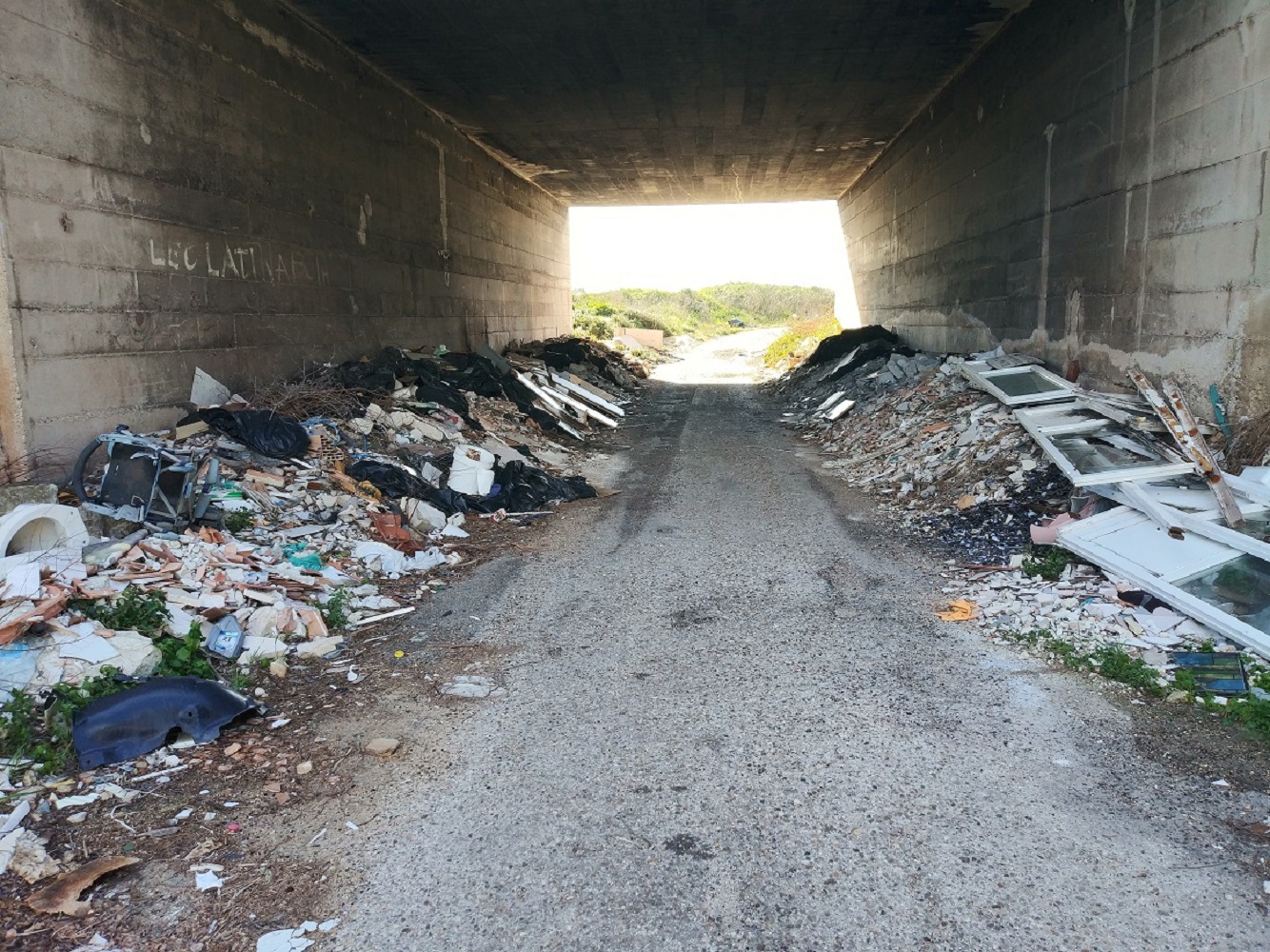 Il primo riguarda il sottopasso posto lungo la SV Fonte delle Citrezze, sotto la superstrada che scavalca il Galeso nell'area delle sorgenti, e che appare ingombro, da ambo i lati, di ogni genere di rifiuti tanto da restringere la carreggiata a tal punto da lasciare percorribile in auto solo uno stretto corridoio centrale. Legambiente l'ha segnalato la prima volta due anni fa ed è tornata a segnalarlo a marzo dell'anno scorso, rilevando – poi – che una foto del sottopasso ingombro di rifiuti compariva già sul sito del Commissario alle bonifiche di Taranto, nel Dossier fotografico relativo a "Mar Piccolo - Bonifica e riqualificazione ambientale delle sponde e delle aree contermini. Campagna di sopralluoghi per l'individuazione, censimento e mappatura dei rifiuti presenti sulle sponde del Mar Piccolo e delle aree contigue" sin dal 5 febbraio 2016. Quattro anni fa.