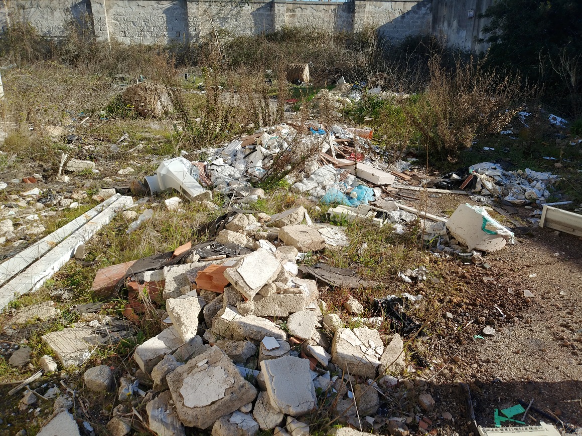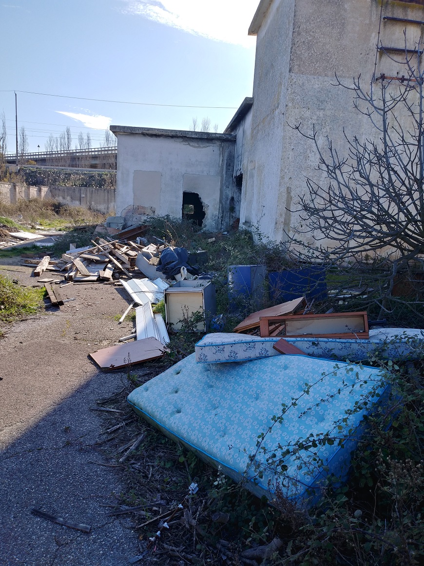 Il secondo riguarda i rifiuti, tra cui manufatti in amianto e RAEE, presenti nel cortile di un immobile una volta utilizzato dall'Acquedotto Pugliese (AQP) ed oggi abbandonato e semidiroccato, posto sempre nell'area delle sorgenti del Galeso, accessibile a chiunque, bambini compresi, da due comodi varchi – uno abbastanza ampio da permettere agevolmente l'ingresso di autoveicoli – presenti nel muro di cinta. Rifiuti pericolosi, segnalati da Legambiente al Comune di Taranto il 18 febbraio 2018, il 20 marzo 2019 e il 10 ottobre 2019 ed ad AQP il 17 ottobre 2019, evidenziando sempre la necessità di un intervento urgente di rimozione. In merito, tra Comune di Taranto e Acquedotto Pugliese, si è protratto per ben sedici mesi, dal 23 luglio 2018, data di una prima nota del Comune, al 19 novembre 2019, data della risposta di AQP, uno scambio di corrispondenza che non ha prodotto alcun risultato se non il consolidamento di una discarica abusiva.