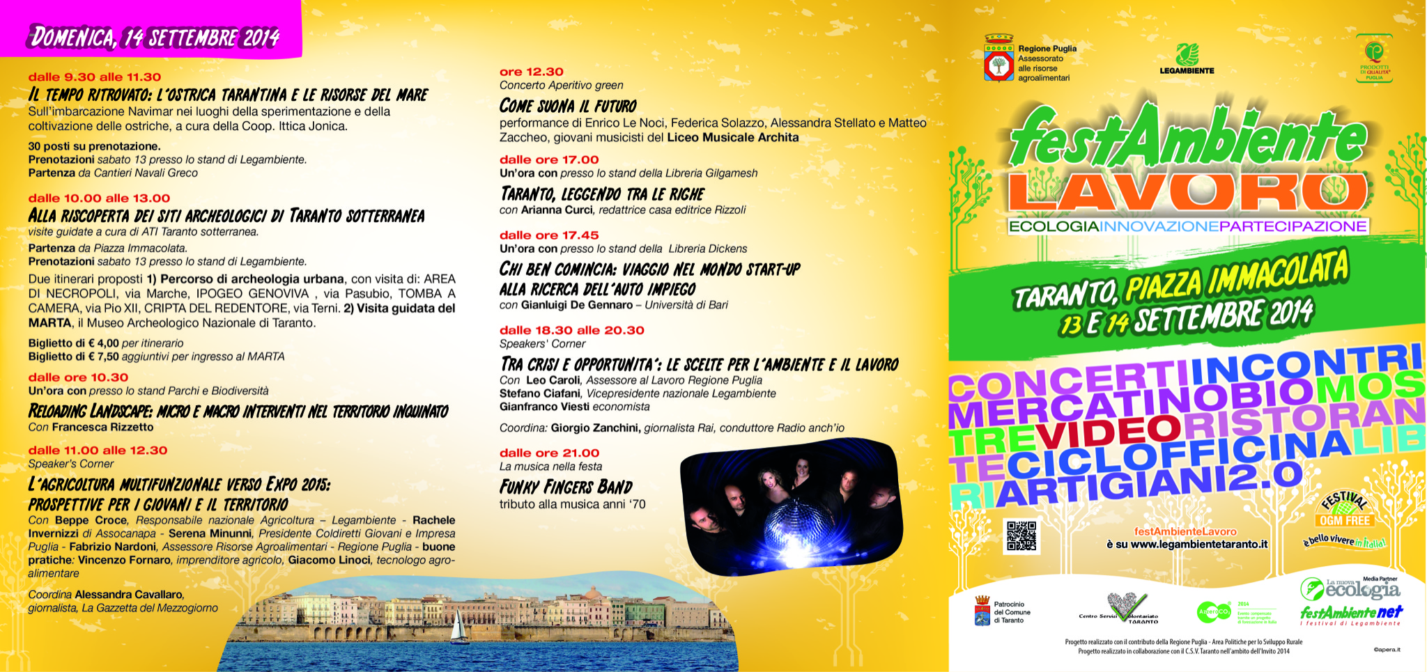 FestAmbiente Lavoro: Taranto – Piazza Immacolata – sabato 13 e domenica 14 settembre